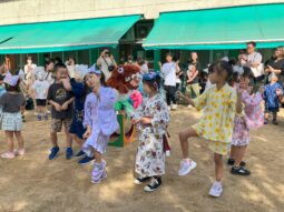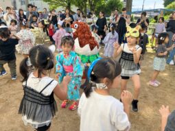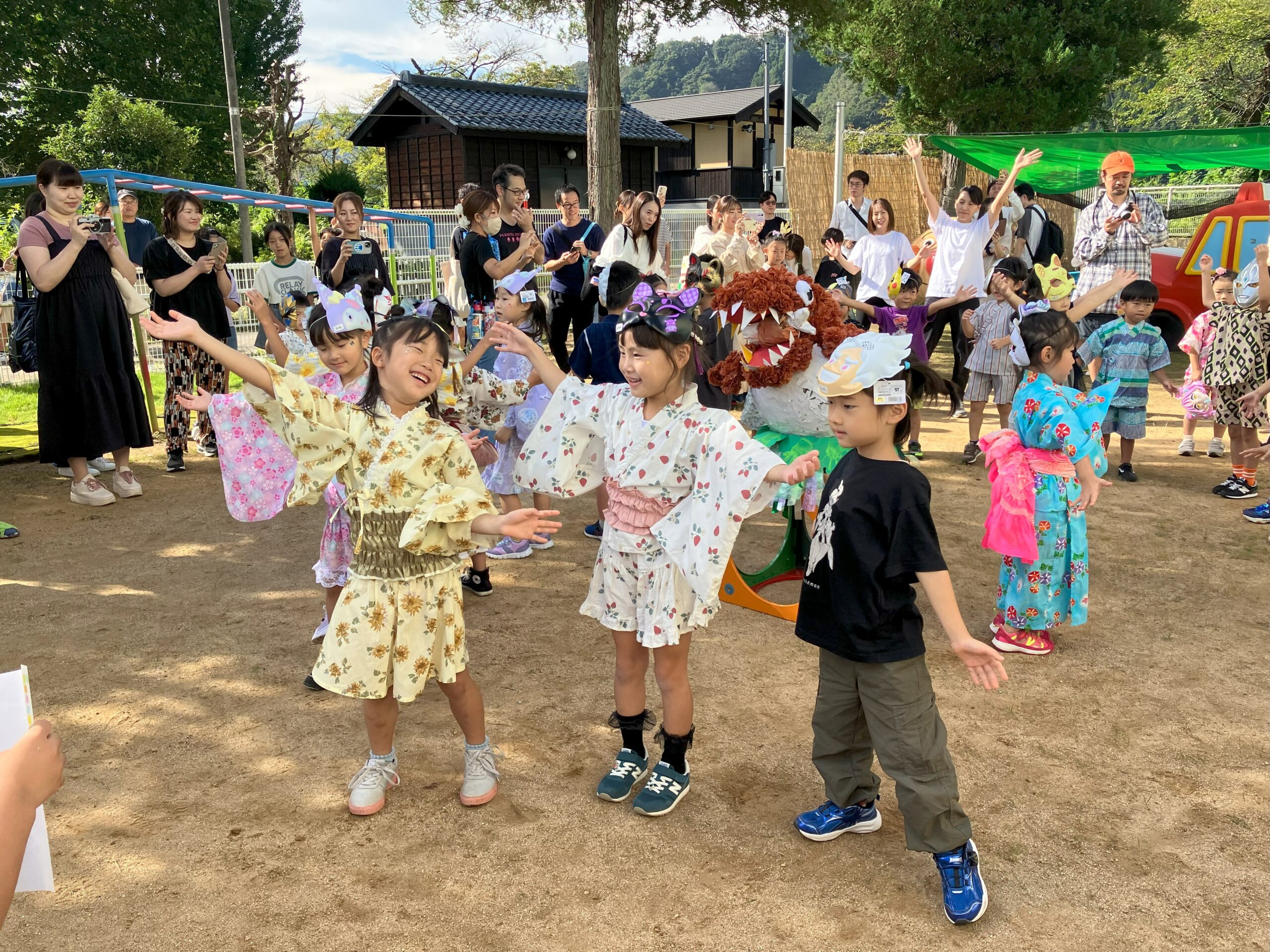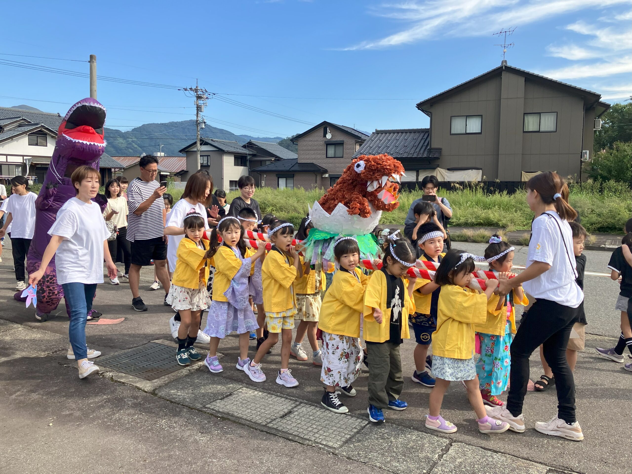「わっしょい! わっしょい!」 みんなで作った恐竜みこしでスタート!