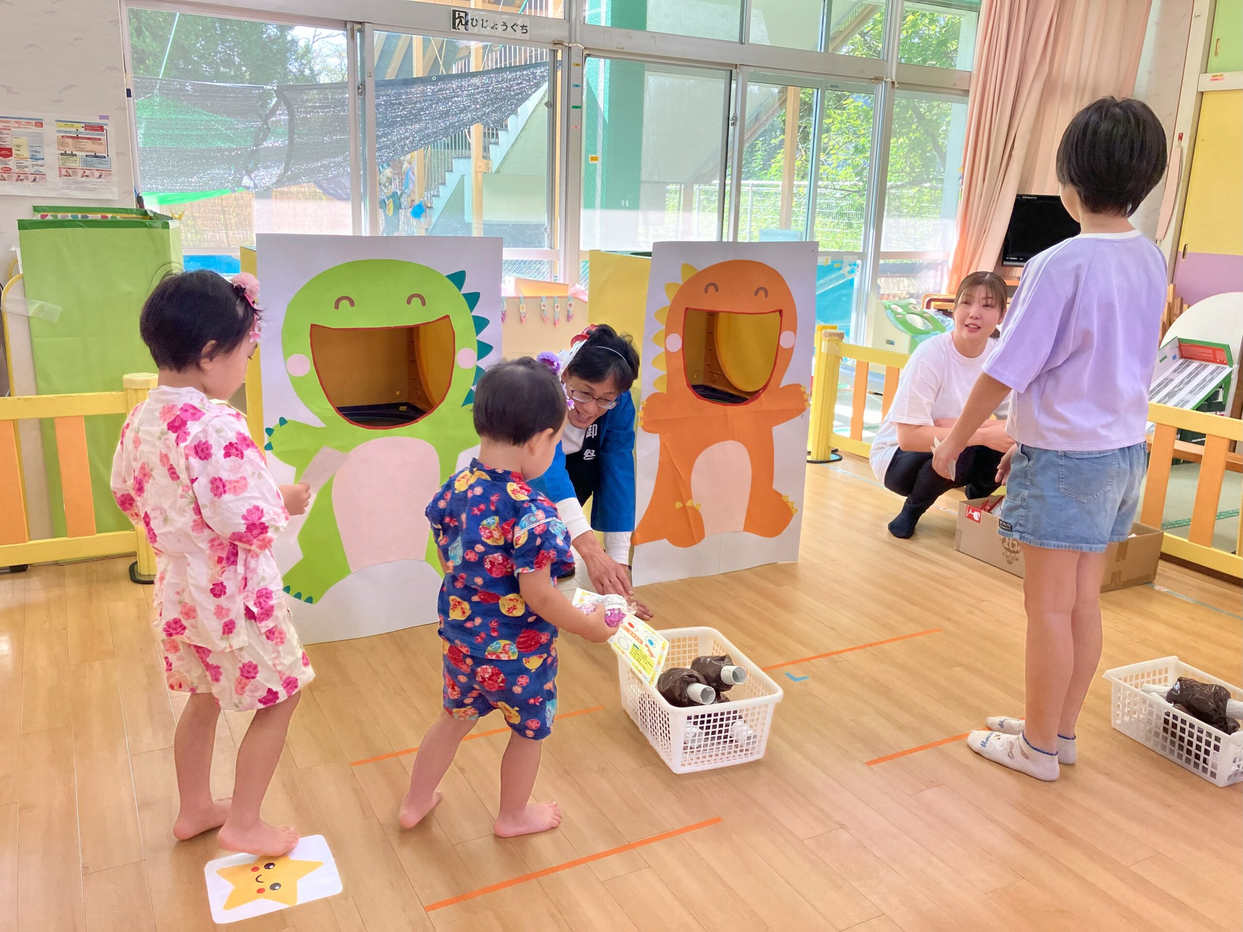 恐竜にちなんだゲームをしたり、恐竜ナゲットを食べたり…楽しみました。