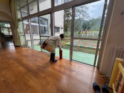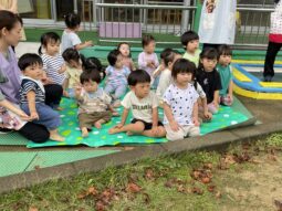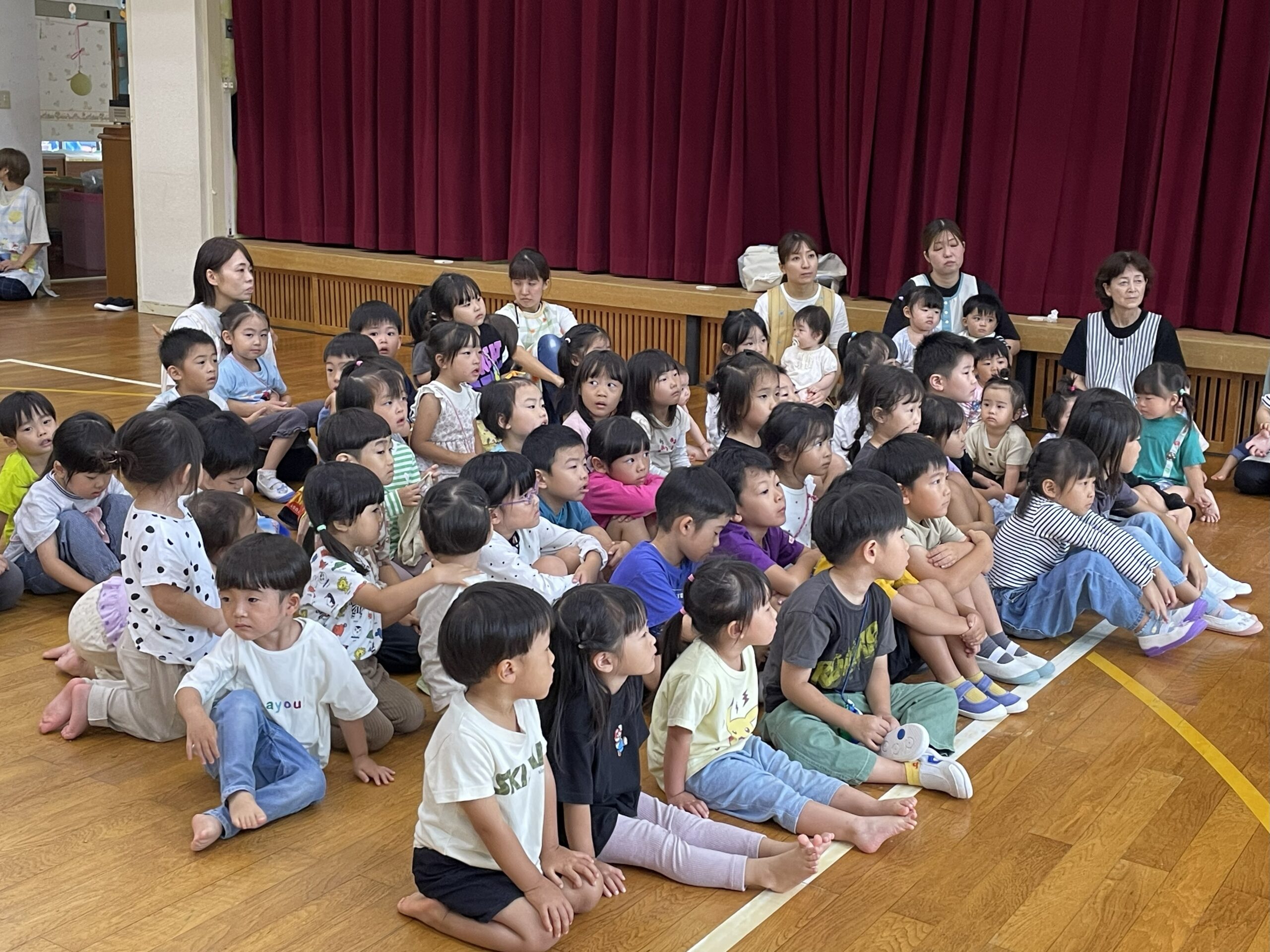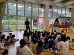 きりん組・ぞう組のお友だちはスモークマシーンで煙いっぱいの部屋を通る訓練もしましたよ。