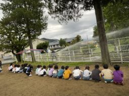 その後は消防車の放水を見たり、消防士さんと写真を撮ったりしました。