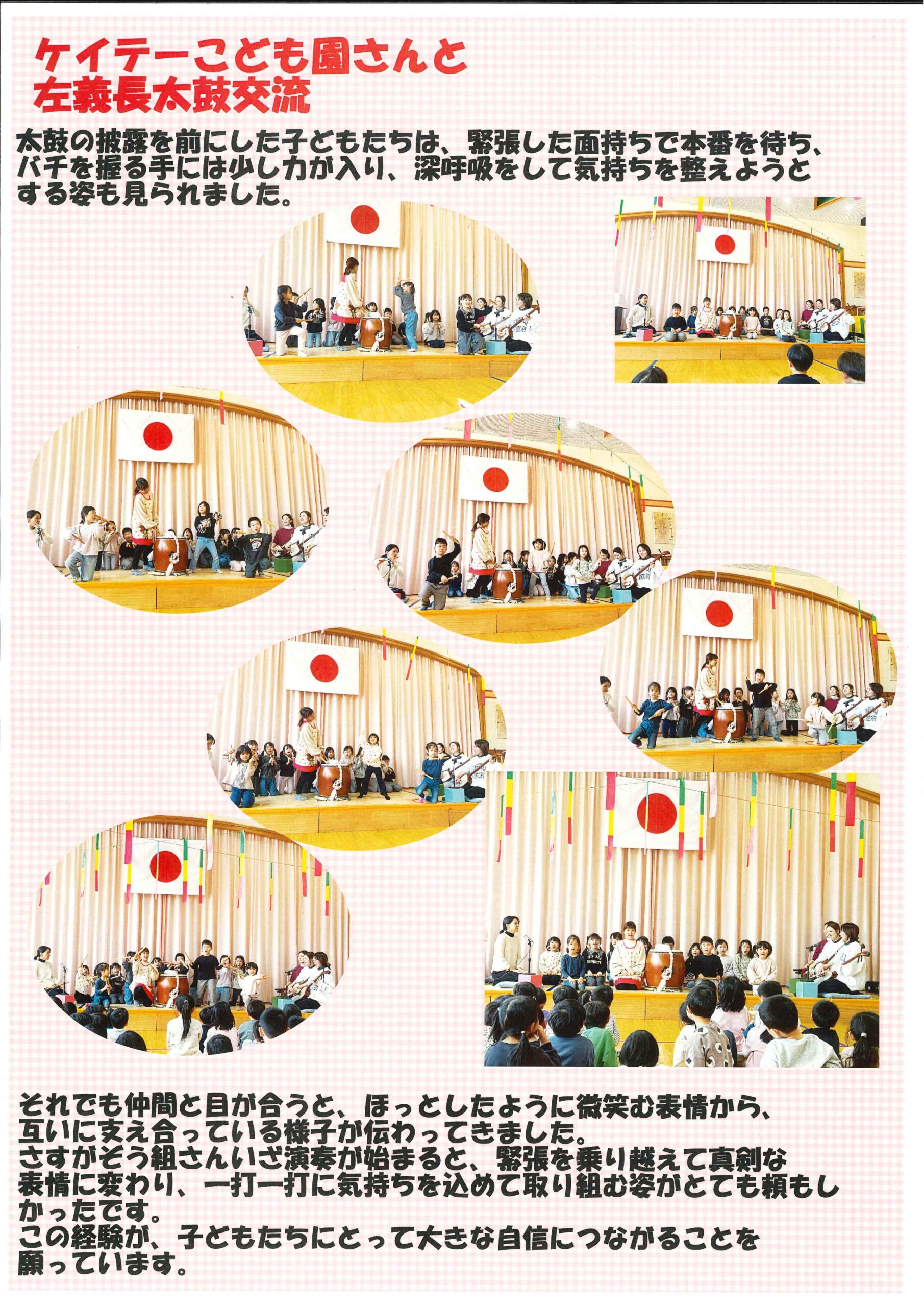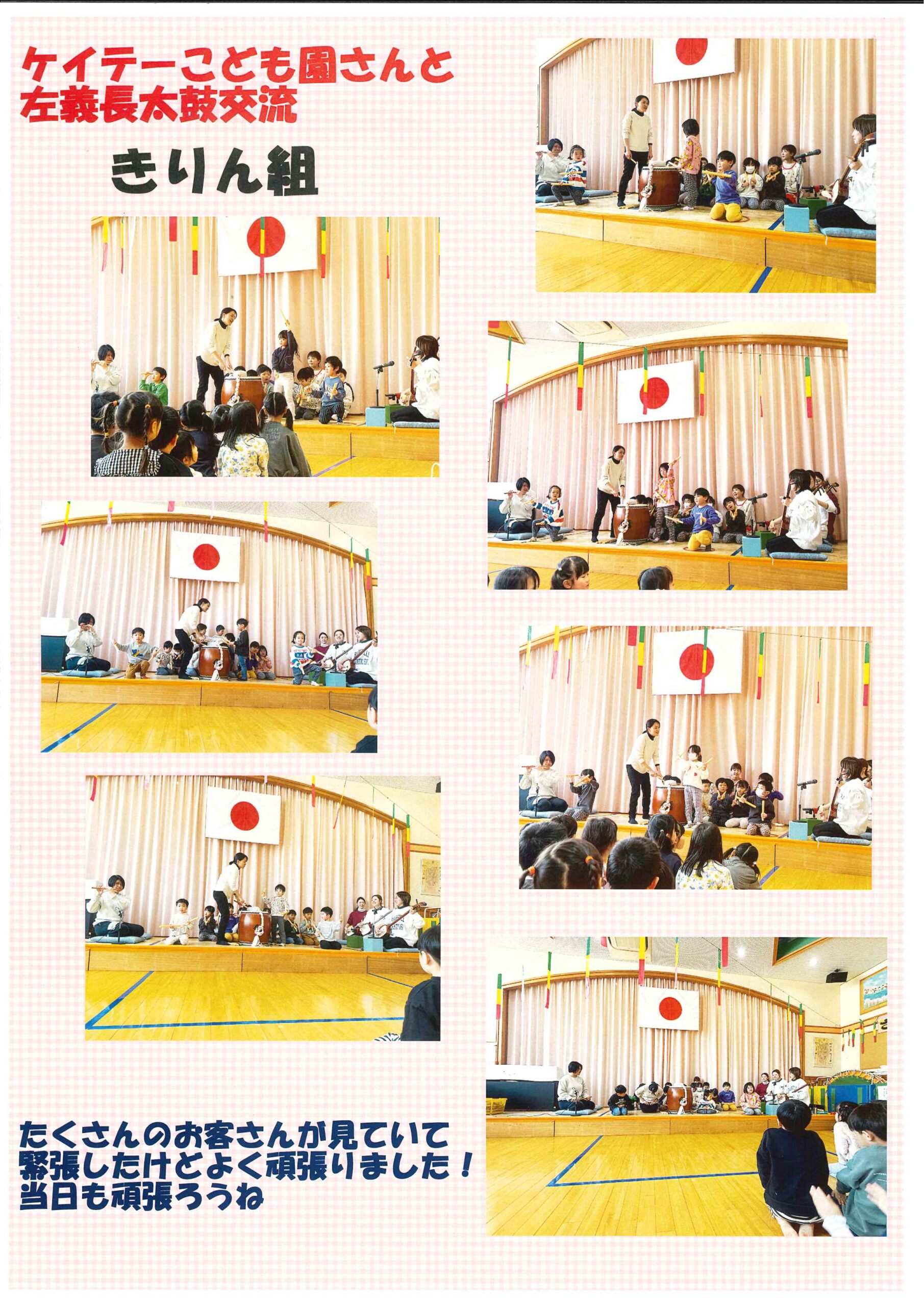 ケイテーこども園へ行き、左義長太鼓の見せあいをしましたよ。