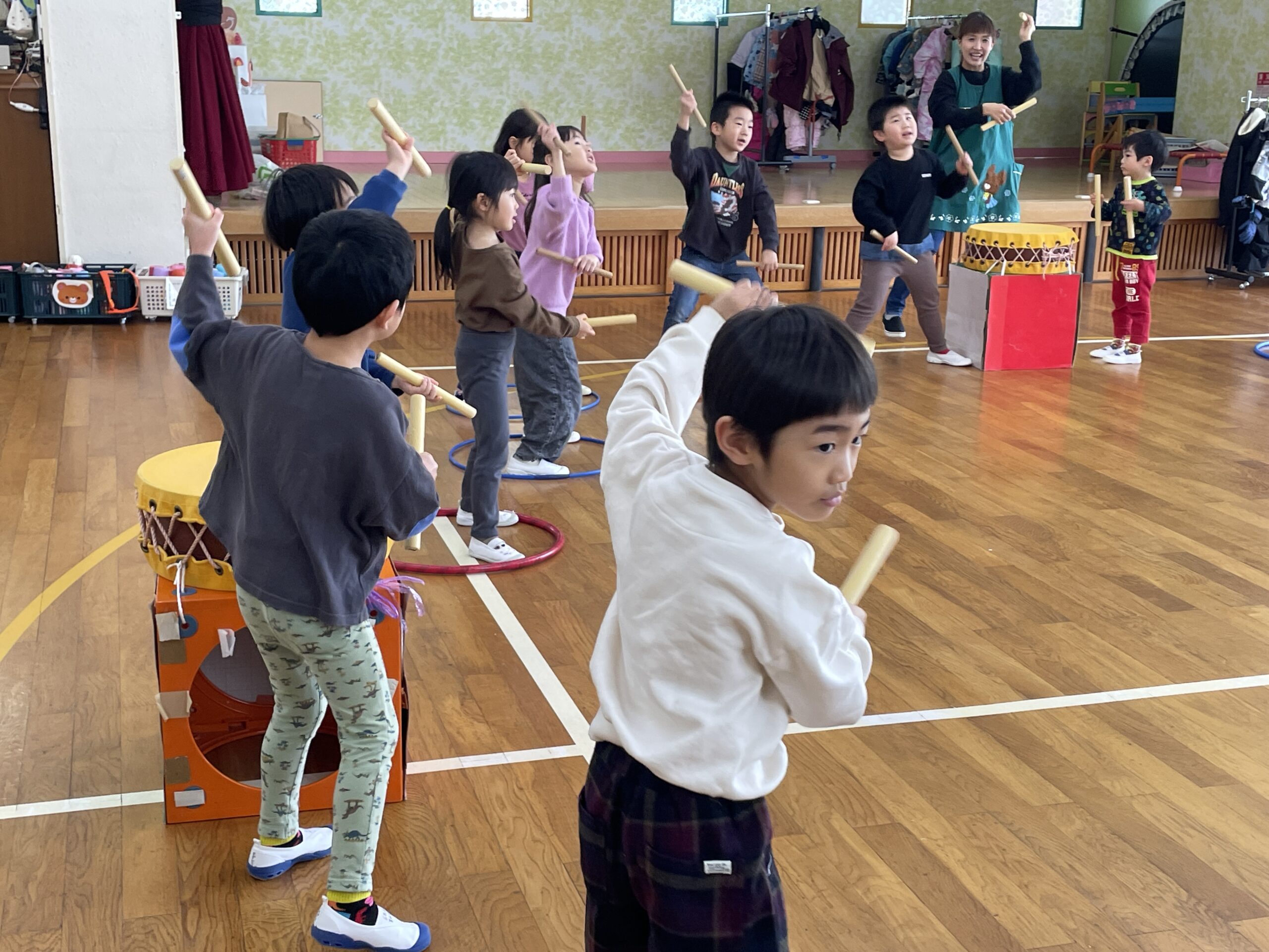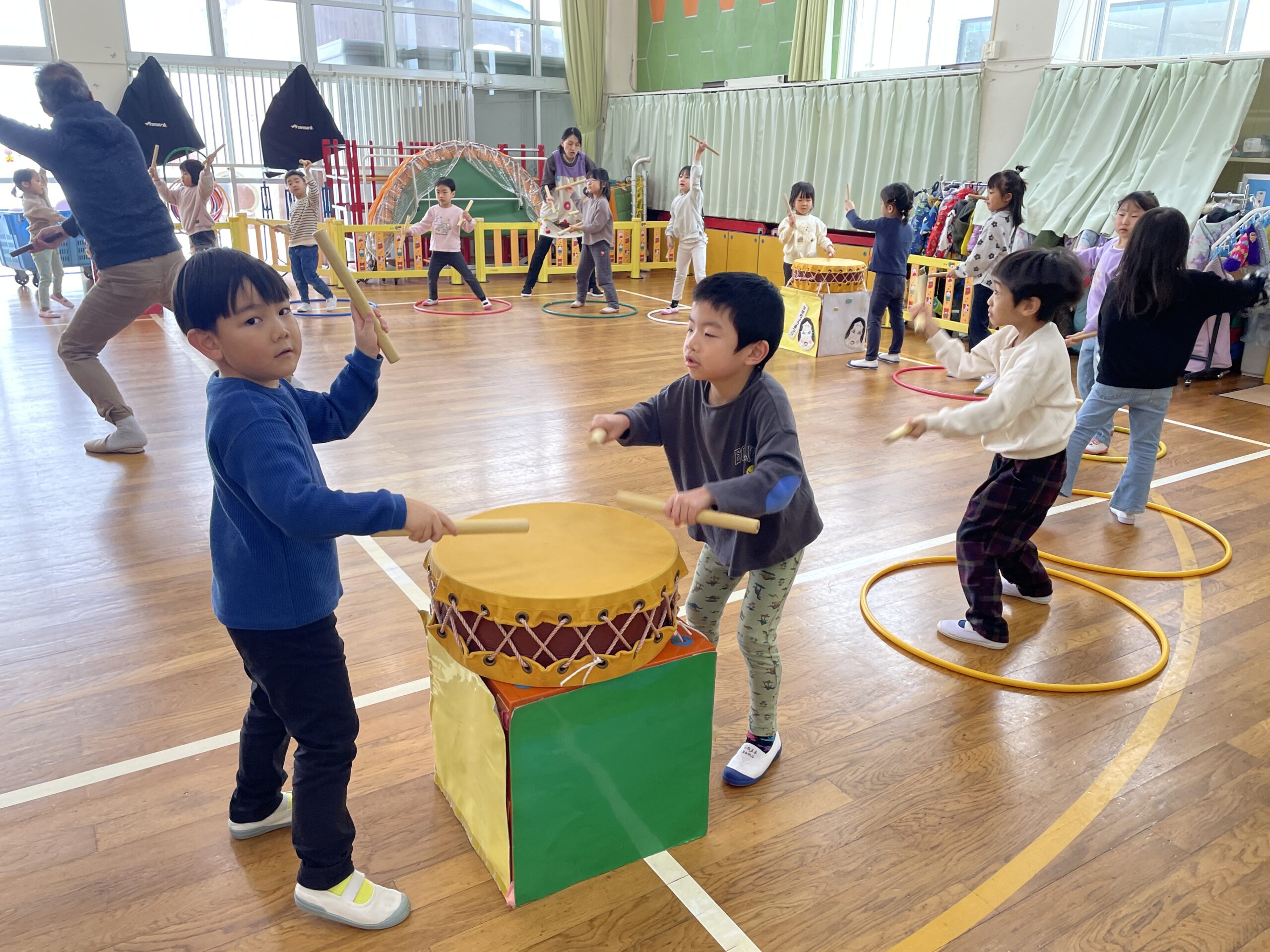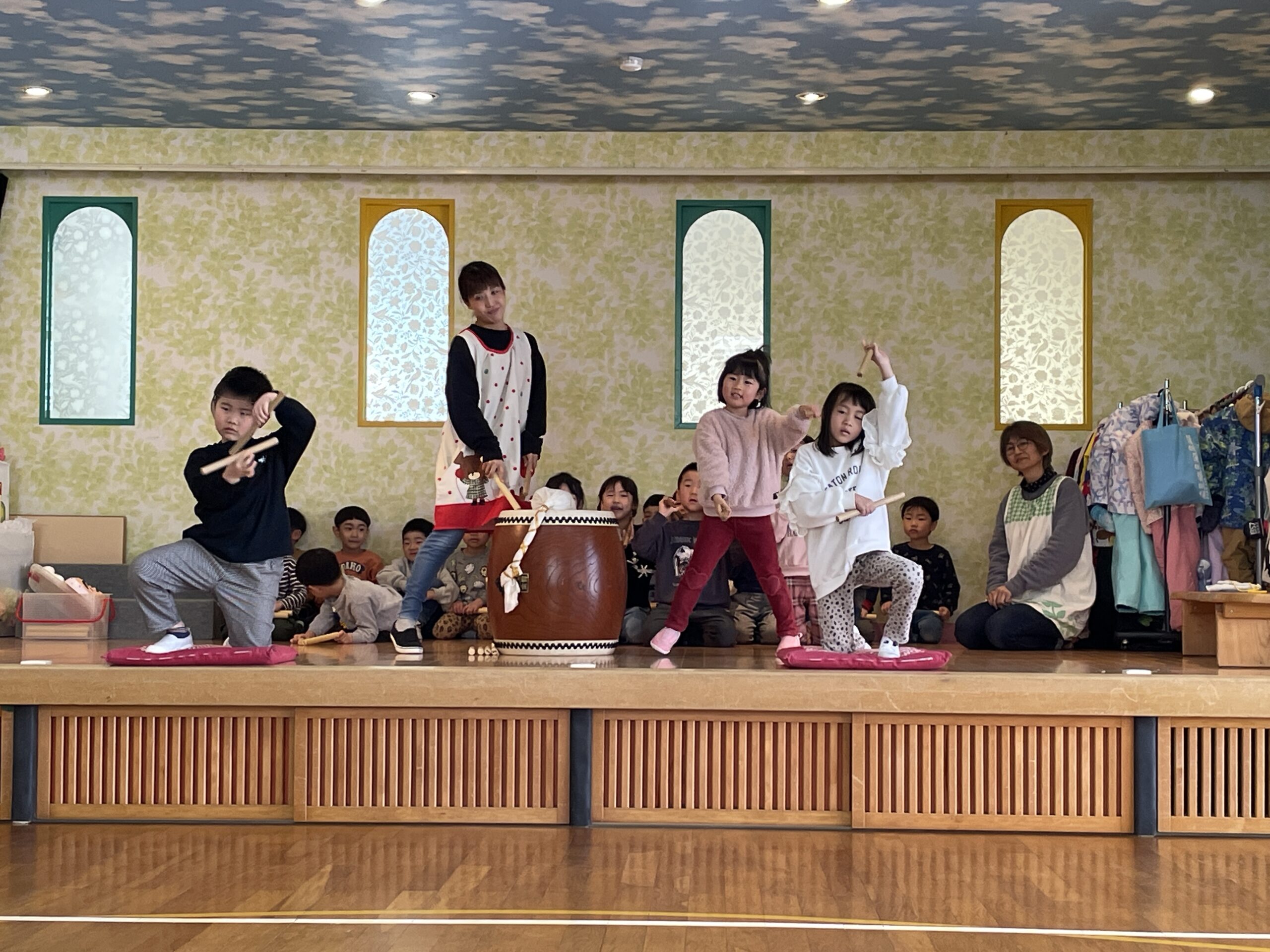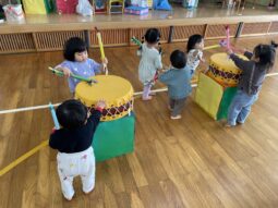 今日は園内で、太鼓を披露してくれましたよ。