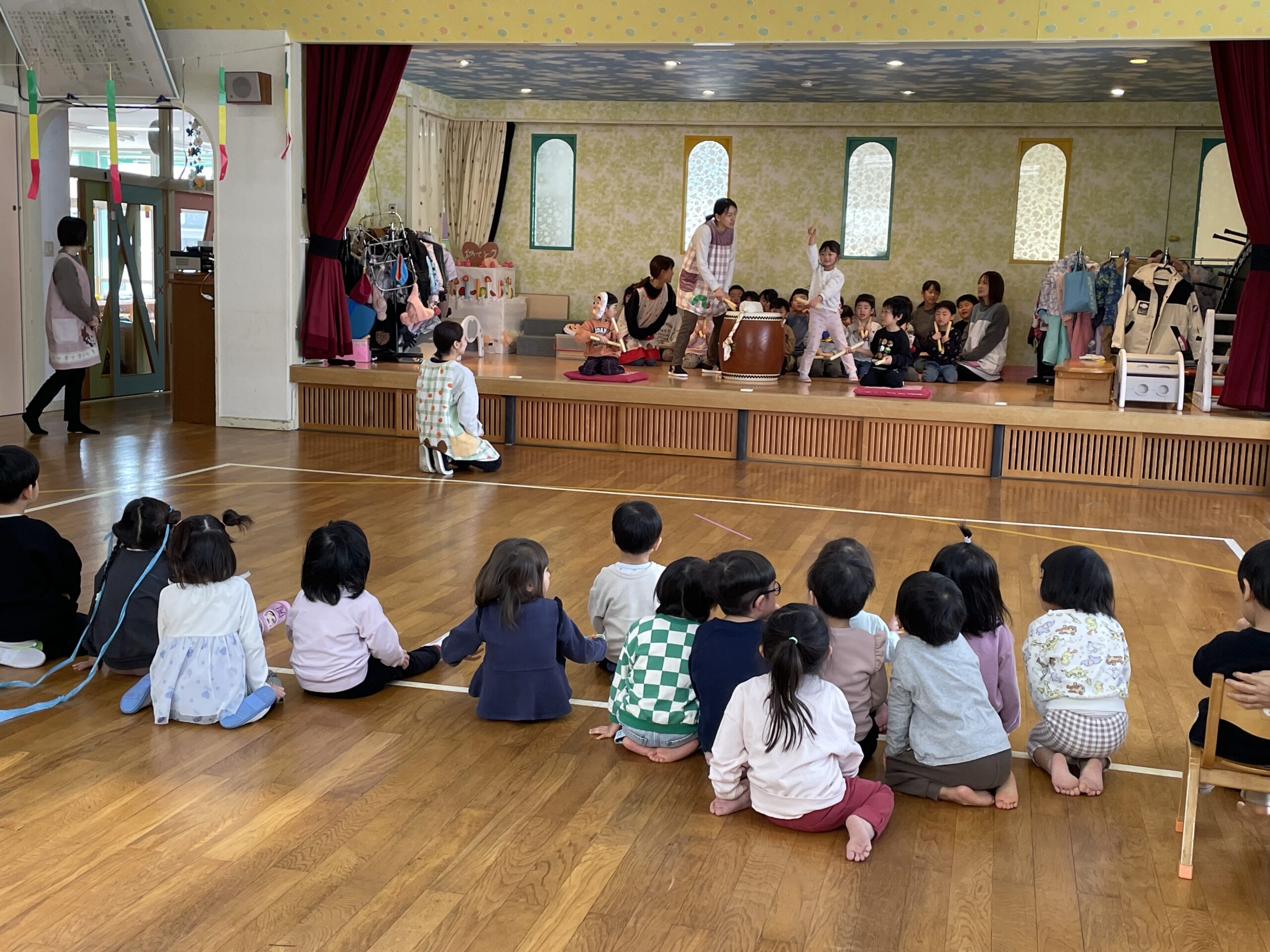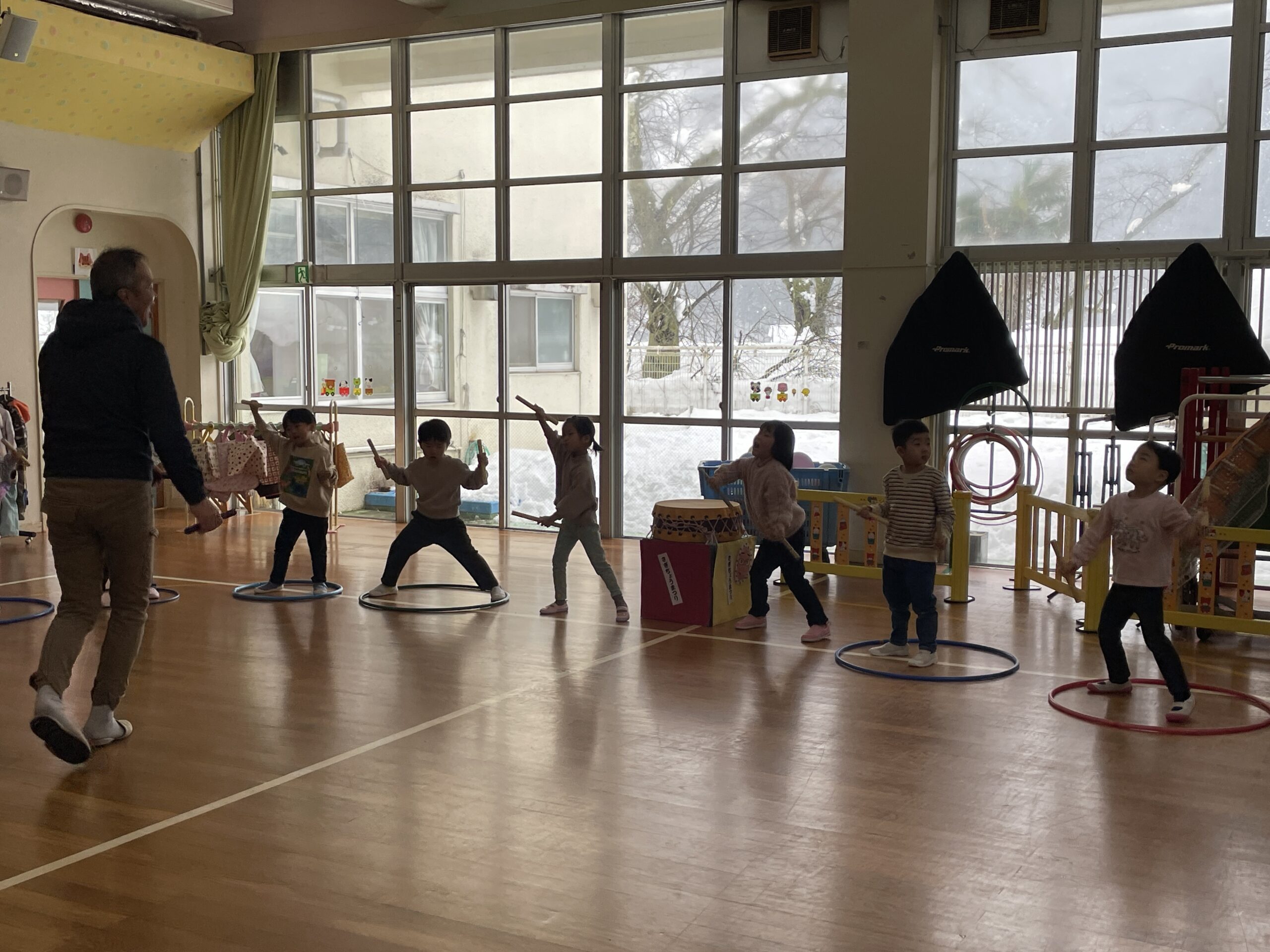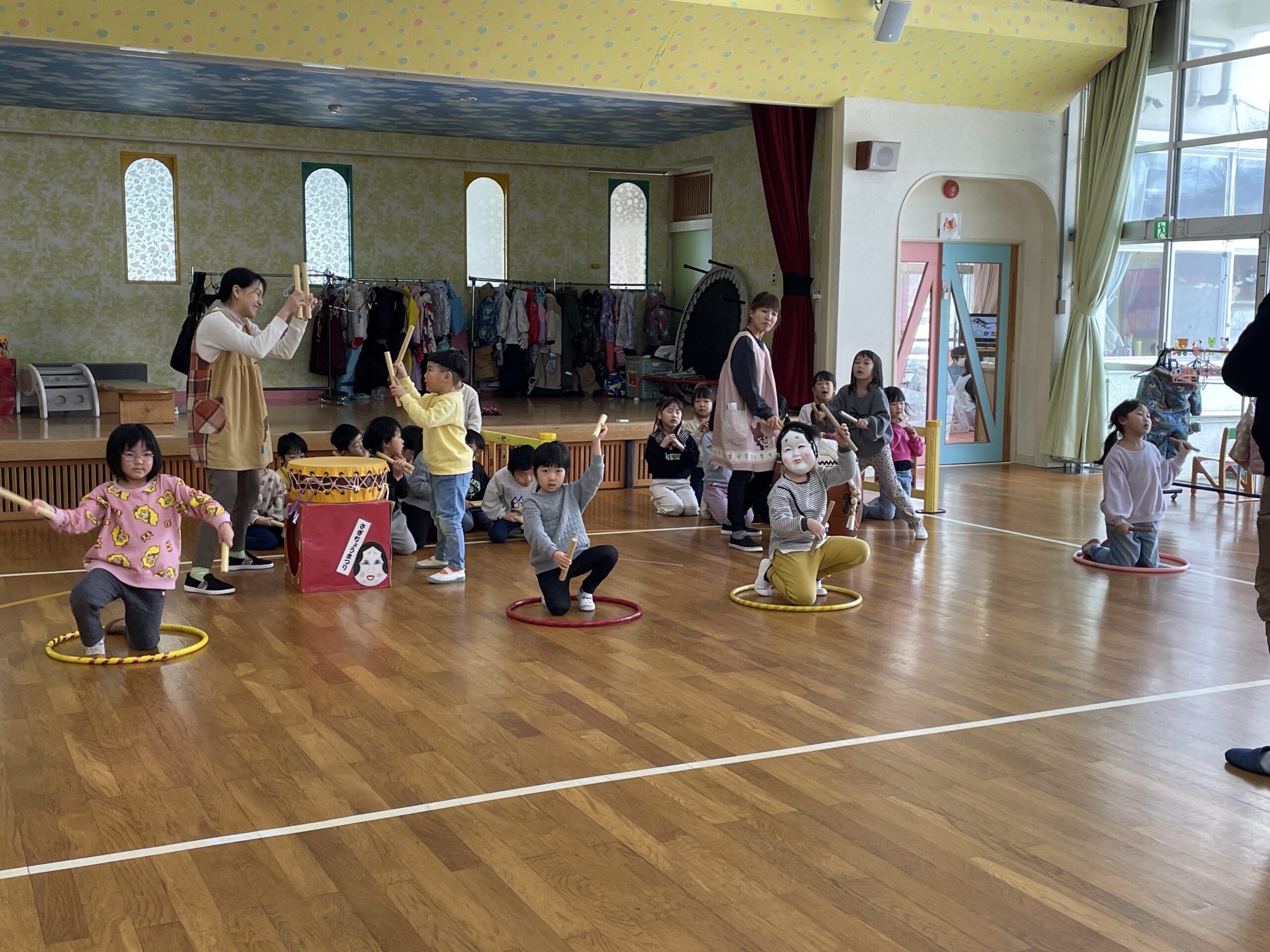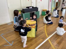 今日は園内で、太鼓を披露してくれましたよ。